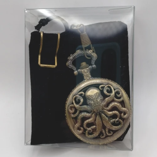 Metal pocket dice case with polyhedral mini-kit: mystic helm - Cthulhu - gold in a black suedecloth pouch